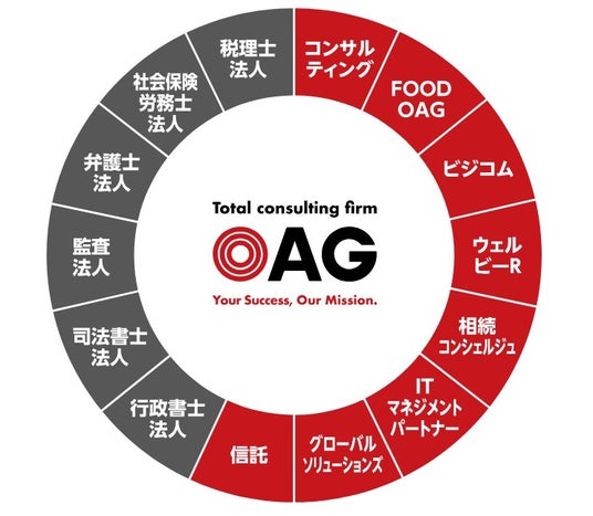 株式会社OAGコンサルティンググループは、公認会計士、税理士、弁護士、司法書士、社会保険労務士、行政書士など、150名を超える専門資格者を擁する総合士業グループです。