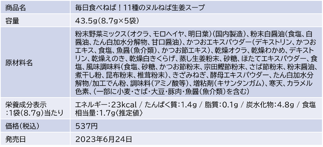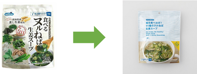 「もっとヌルねばを感じたい」というお客さまの声にお答えするため、ヌルねば食材を9種から11種に増やして、からだWelcia「毎日食べねば!11種のヌルねば生姜スープ」としてリニューアルを行いました。
