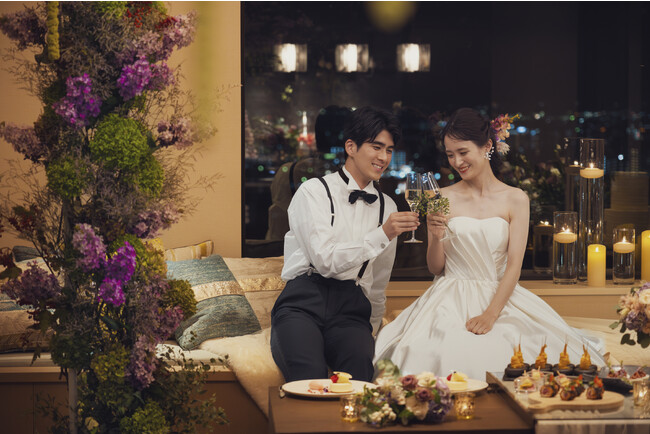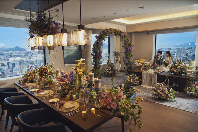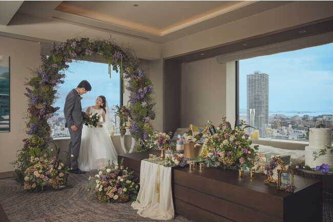 今年秋にホテル開業1周年を迎えるヒルトン広島(広島市中区 総支配人サミュエル・ピーター)は、ホテル高層階に位置するスイートルームを利用したウエディングの新提案『プレミアムスイートウエディング』を11月1日(水)より開始します。少子化による婚礼数の減少や少人数化、多様化するライフスタイルにホテルらしいおもてなしでお応えする本プランは、ホテル内に3室のみご用意のプレミアムスイートとG7広島サミット開催時にはアメリカ大統領をお迎えした事でも話題となったプレジデンシャルスイート、計4部屋のスイートルームで叶えるウエディングプランです。料金はスイートルームで行う人前式プラン「Sweet(スイート)」が48万円~、ドレスやお食事、装花などがセットになったパーティープラン「Elegance(エレガンス)」は96万円~でのご提供となります。