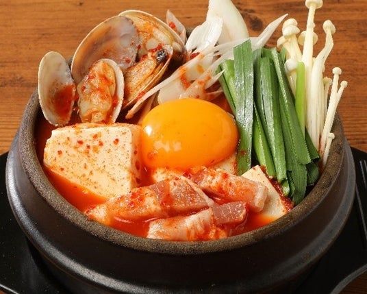 代表的な「スンドゥブチゲ」はもちろん、とろけるチーズが辛さを優しく包み込む「チーズキムチチゲ」やぷりっぷりの牛ホルモンが口の中で踊る「牛もつチゲ」もあり、お米との相性抜群でお酒にもぴったりです!