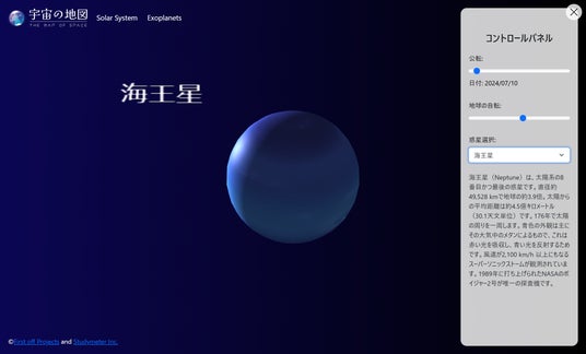 本サービスは、宇宙産業を志す高校生が開発しました。2023年12月に、自身の関心に基づいたアプリケーションを作成する目標からプロジェクトが始まり、2024年2月にNASAのオープンデータを活用した太陽系外惑星の3Dマップをリリースしました。