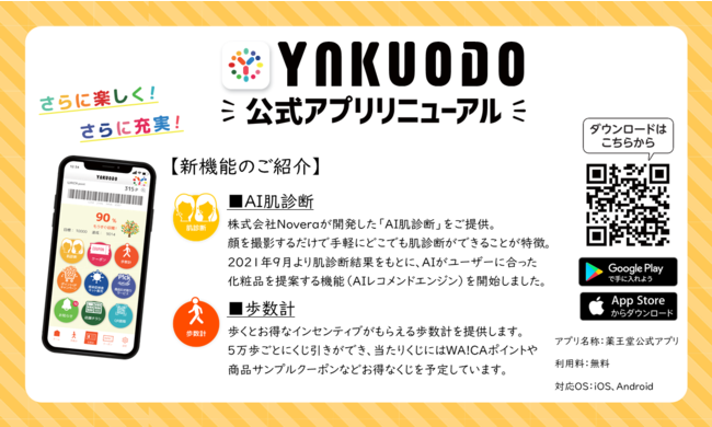 ・歩数計、AI肌診断機能などがご利用可能な多機能なアプリ