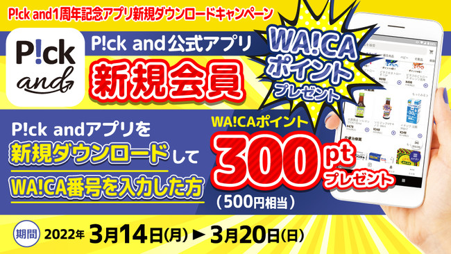 2021年3月14日より提供しているP!ck andの1周年記念と公式アプリを日頃からご利用いただいているお客さまへの感謝の気持ちとして3月14日~、3月21日~に2つのキャンペーンを実施。