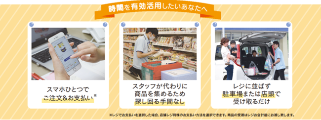 「保育園のお迎え前にお買い物ができるようになった。平日の買い物を短くして家族と過ごす時間が増えた。」