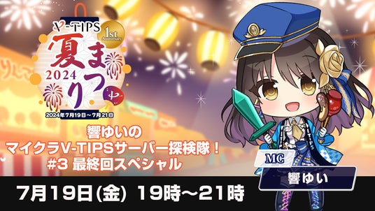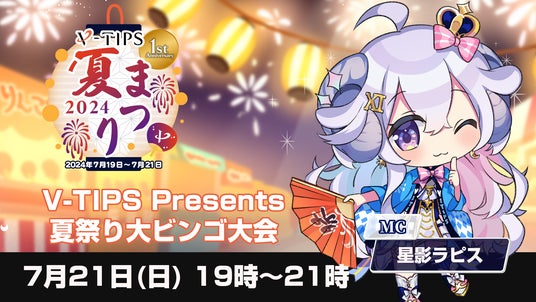 3つの公式配信と、豪華なキャンペーンでお送りするオンラインイベント、「V-TIPS夏祭り2024」開催!7月19日~7月21日にかけて、音楽、ゲームなど楽しい配信満載の3日間をお届けします。