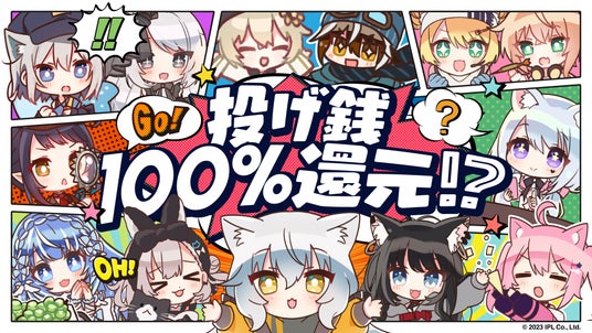 さらに、リターンガチャやグッズ販売の他に、SNSでのオリジナルイラスト獲得キャンペーンや、特別な投げ銭還元率100%キャンペーンを実施。