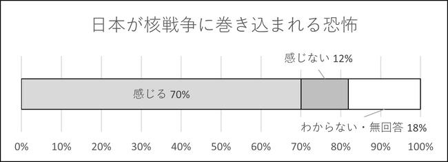 続けて「日本が核戦争に巻き込まれる恐怖を感じますか」と聞いたところ、こちらも「感じる」が70%を占め、「感じない」の12%を大きく上回った。東アジアでは、核・ミサイル開発を進める北朝鮮が日本海などへのミサイル発射を繰り返し、核戦力の増強を続ける中国がロシアとの軍事的連携を強めている。こうした日本周辺の厳しい安全保障環境に対する危機意識も高まっているようだ。
