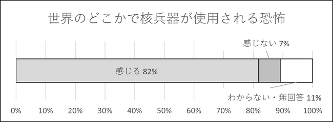 社会調査研究センター(SSRC)は8月6日、スマートフォンを対象とした新しいインターネット調査方式「dサーベイ」による全国世論調査を実施した。8月6日は広島原爆の日であることを指摘したうえで「世界のどこかで核兵器が使用される恐怖を感じますか」と尋ねたところ「感じる」との回答が82%に上り、「感じない」はわずか7%だった。ロシアが核兵器の使用をちらつかせてウクライナ侵略を続けており、世界的に核戦争への危機感が強まっていることを反映した結果と言えそうだ。