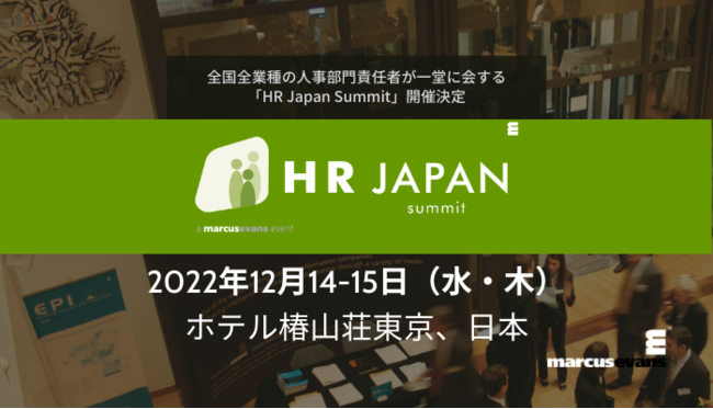 マーカス・エバンズ・イベント・ジャパン・リミテッド(本社:英国/代表:雪下 大輔、以下「マーカスエバンズ」)は、2022年12月14日-15日に『HR Japan Summit 2022』と題する、全国全業種の人事部門統括責任者が一堂に会するビジネスサミットをホテル椿山荘東京にて開催する運びとなりました。