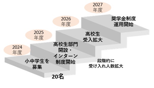 小中学生部門からスタートし、高校生部門へと段階的に拡大。希望に応じてフードバンク山梨と連携する企業の協力を得て、見学会・インターンシップ等を実現させ、将来的には就職への道筋をつくります。奨学金基金の設立も視野に入れて、持続可能な取り組みを目指します。