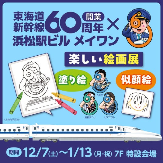 浜松駅ビルメイワンでは、東海道新幹線開業60周年記念イベントとして、地元幼稚園児による作品展を開催します。また、2025年新春福袋情報を併せてご案内致します。