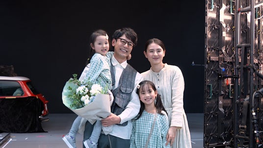 撮影の合間には子役たちと積極的に会話を交わしたり、じゃれ合ったりと終始自然体の様子を見せていました。CM本編さながらの微笑ましいやりとりが続き、妻夫木さんの穏やかな人柄が感じられる、温かな雰囲気での撮影となりました。撮影終了の際には、子役たちが妻夫木さんに抱きつき、現場は和やかなムードで締めくくられました。