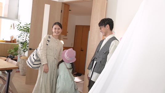 今回、『ハミング消臭実感 部屋干しタイプ』のTVCMに初出演となった妻夫木さんは、2児の父親役として子役2人と共演。撮影前のあいさつでは妻夫木さん自ら優しく声をかけ、現場の緊張を和らげる場面も見られました。