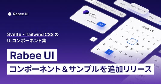 株式会社Rabee(本社:東京都渋谷区、代表取締役:上松勇喜)は、Svelte × Tailwind CSSのUIコンポーネント集「Rabee UI」において、複数のコンポーネントとサンプルの追加及び、AIツールがRabee UIの情報をより正確に読み取れるように改善を行いました。今回のアップデートも含む全46種類のRabee UIコンポーネントは、以下から確認できます。