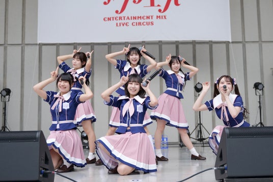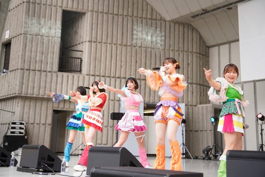 ファンの“MIX”がさらにライブを盛り上げる真っ白なキャンバスに続いて登場したのは、メジャーデビューが決定したC;ON。サックス、ユーフォニアム、キーボードの音色と愛佳&栞音の伸びやかな歌声が日比谷の空高く響き渡っていた。ハロプロ研修生ユニット‘24は、さすがハロー!プロジェクトという息ぴったりのライブを披露。
