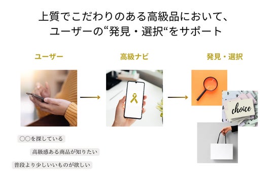 高級ナビは、”普段よりちょっとイイもの”から”人生で一度は買ってみたい贅沢品”まで、世界中から厳選した高級なモノを幅広く紹介するメディアです。「ちょっといい贅沢品」や「こだわりのある高級品」を探して訪れたユーザーの”発見・選択”をサポートし、ユーザーと人生を豊かにしてくれる商品や作り手とを繋ぐ役割を果たします。