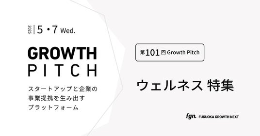 「Growth Pitch」Fukuoka Growth Nextと有限責任監査法人トーマツが共催している大企業や中小企業、VC、メディアを対象としたスタートアップによるピッチイベントです。スタートアップの調達機会や、企業との事業提携機会の創出を目的として毎月開催しています。