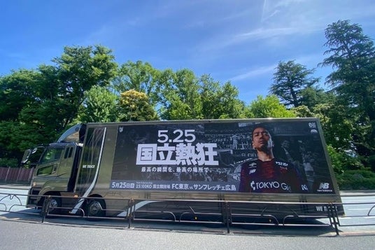 アドトラックを起点とした次世代モビリティマーケティング事業を展開する株式会社WE TRUCK(本社:東京都港区、以下WE TRUCK)は、2025年5月25日(日)に国立競技場で開催された2025明治安田J1リーグ 第18節「FC東京 vs サンフレッチェ広島」の告知プロモーションにおいて、AIカメラ搭載の「モビリティマーケティング」を活用した走行キャンペーンを実施しました。