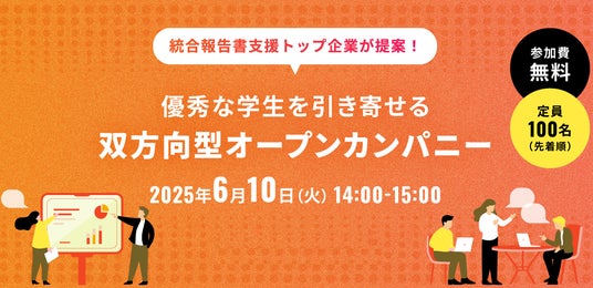 株式会社ブレーンセンター(大阪市北区、代表取締役社長:平石隆生)は、2025年6月10日(火)、ウェビナー「統合報告支援トップ企業が提案!優秀な学生を引き寄せる双方向型オープンカンパニー」を開催します。