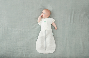 足の動きがより活発的になってきたら、寝返りができたら、ジャージースリーピングバッグにステップアップします。〈スワドルが卒業できない〉とお悩みの方にもおすすめです。毛布や掛け布団がいらないポーチ(=寝袋)タイプ。大人と違って体温調節が苦手な赤ちゃんの、寝冷え対策にもなります。 https://ergopouch.jp/collections/jersey-sleeping-bag