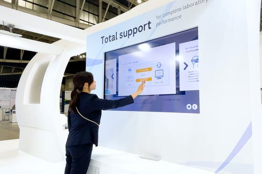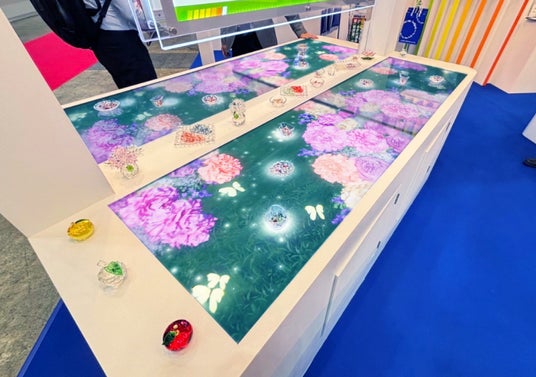 展示台に液晶モニターを埋め込んだ花の展示台やタッチパネルコンテンツを制作
