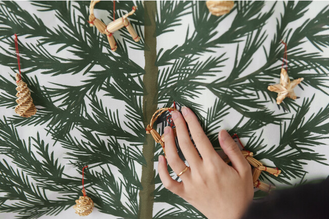 画鋲や両面テープで壁に貼るタペストリーツリーには、なるべく軽いオーナメントを合わせるのがおすすめ。
