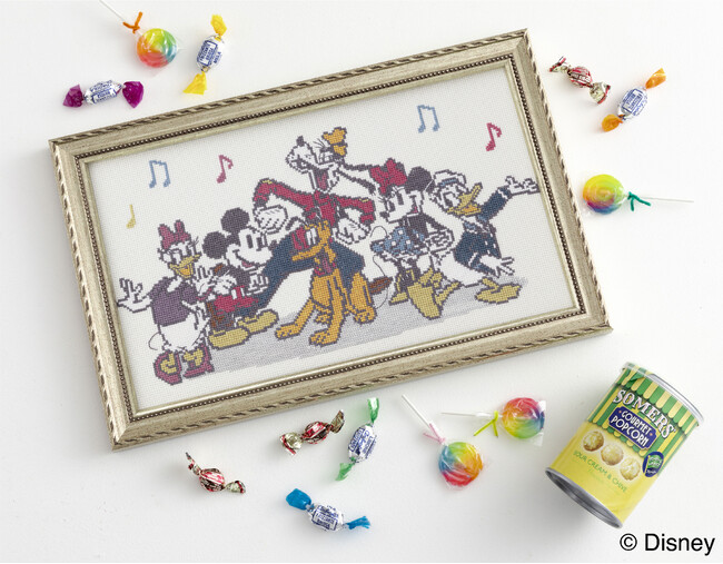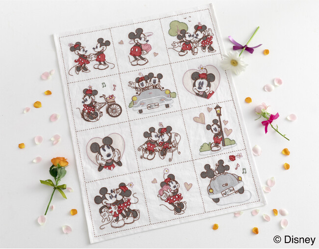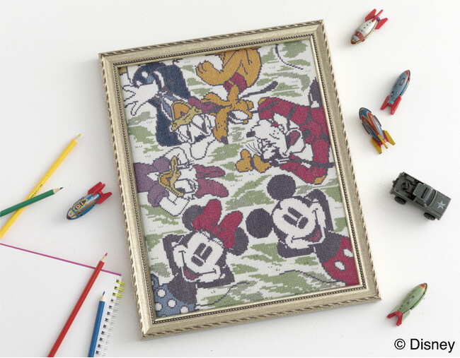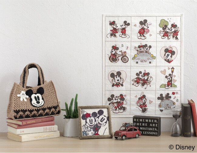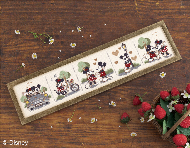 ミッキー&ミニーの幸せなデートの様子を切り取った図案や、ミッキーたちが楽しく過ごす1日をイメージしたレイアウトを落ち着いたカラーリングで。大人も楽しめる刺しゅうキットを5種類発売します。