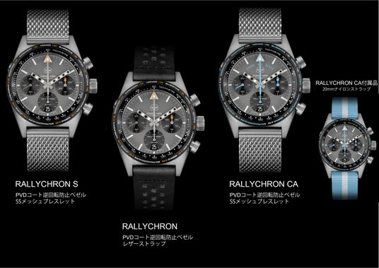 (左)Rallychron レザーストラップ仕様 価格51万7000円 (右)Rallychron CA SSメッシュブレスレット 価格55万円(ナイロン製ストラップ付属)