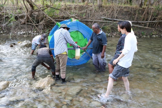 LIFEがスンバ島で開発する電気や燃料を使わず川の流れる力で水を汲み上げるポンプ