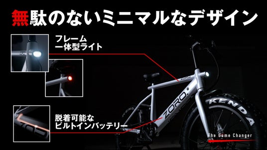 装飾的趣向を削ぎ落とした磨き抜かれたミニマルデザインにパワーを融合したハイスペックE-BIKE ZORO.FATモデルは、極太タイヤで大胆かつ圧倒的な存在感で、強靭フレームで操縦も自由自在。