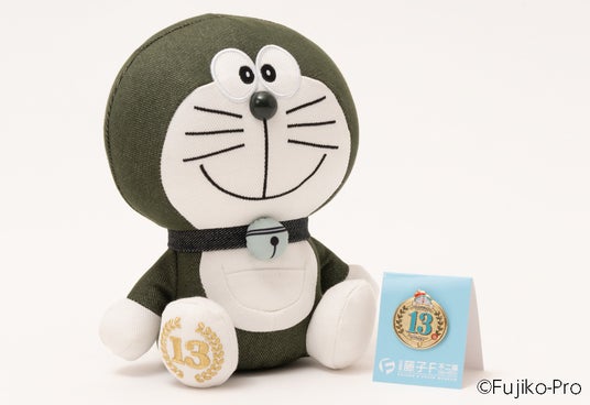 左:13周年デニムドラえもんぬいぐるみ 右:13周年ピンズ