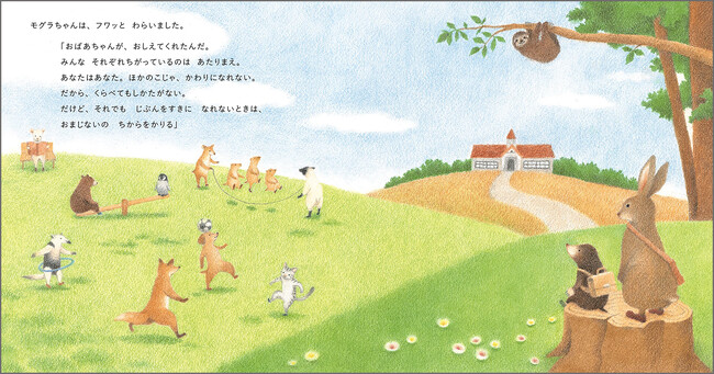 そんなモグラちゃんのことをキツネちゃんがからかいますが、モグラちゃんはへっちゃらです。なぜならモグラちゃんは、おばあちゃんに教えてもらった「おまじない」という強い味方があったのです。