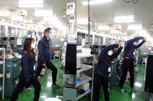 健康体操を実施する社員