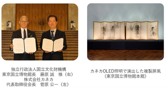 株式会社カネカ(本社:東京都港区、社長:田中 稔)は、1月22日に独立行政法人国立文化財機構東京国立博物館(館長:藤原 誠)(以下、東京国立博物館)と、カネカ有機EL照明(以下、カネカOLED照明)の寄贈に関する基本合意を締結しました。今後、東京国立博物館本館2階における展示室の天井照明、展示ケース照明の切り替えを進めてまいります。