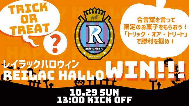 株式会社Mi-Oスポーツ(本社:滋賀県草津市西大路町4-32クサツエストピアホテル2F-6、代表取締役:河原吉貴)が運営するレイラック滋賀FCは第25節で鈴鹿ポイントゲッターズと敵地にて対戦。J3昇格に向けて上位キープが絶対条件の中で0-3と相手を突き放して見事に勝利しチームは連勝。ラインメール青森と勝ち点36で並び4位へ浮上。同節引き分けに終わった2位ソニー仙台FCとの勝ち点差を3まで縮めた。レイラック滋賀FCはシーズン後半から新体制の下、3勝2分1敗と安定した戦いを見せている。シーズンもいよいよ終盤に入って残すは4試合となる中でサポーターの期待は高まるばかり。先ずは次節ホームゲームの武蔵野ユナイテッドFC戦で勝利し順位を更に上げて2位を射程圏内に捉える。また当日はハロウィンイベントを開催。仮装した選手がご来場者の皆様をお出迎え。レイラック滋賀FCの限定チョコをプレゼントします。*数量には限りがございます。