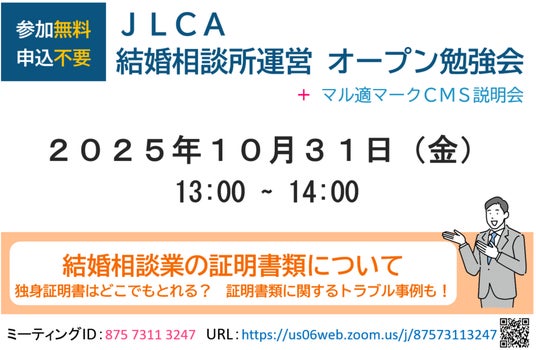【 特定非営利活動法人 日本ライフデザインカウンセラー協会(JLCA)について 】特定非営利活動法人 日本ライフデザインカウンセラー協会(以下 JLCA)は、2007年1月に設立しました。設立時、国民生活センターに寄せられる結婚相手紹介サービス業いわゆる結婚相談所への相談件数は約3,000件を数え、業界への信頼性低下が非常に懸念される状況でした。そのような中、JLCAは第3者認証機関として「結婚相手紹介サービス業認証制度に関するガイドライン」を基準とした「マル適マーク」の認証発行を2008年12月より開始。当初176事業所だった認証件数は2025年3月現在 約610事業所を数えます。JLCAは「マル適マーク」発行の認証事業と、結婚相談所への研修講座事業を通じ、更なる結婚相手紹介サービス業の信頼性向上に貢献するとともに、結婚を求める消費者の安心・安全な婚活に寄与することを社会的使命とすべく活動しています。