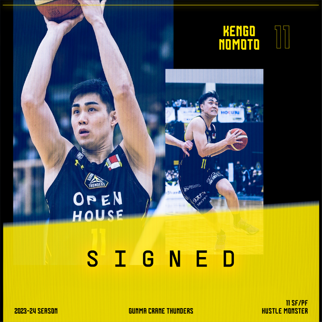 この度、群馬クレインサンダーズでは、#11 野本建吾 選手とのBリーグ2023-24シーズンの選手契約(継続)が基本合意に達しましたのでお知らせいたします。