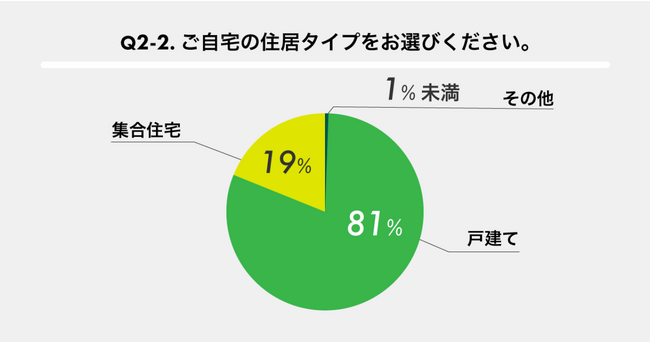 住居タイプとしては「戸建て」にお住まいの方が約8割という結果になりました。