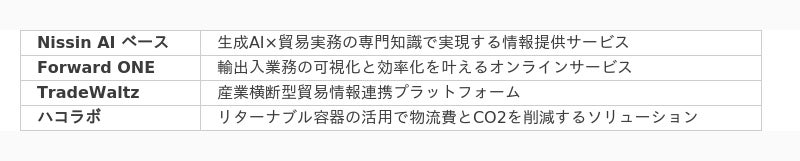 今回は「次世代物流に挑戦する日新のDX」をテーマに3つのサービスと、株式会社トレードワルツが提供する「Tradewaltz(R)」をご紹介いたします。