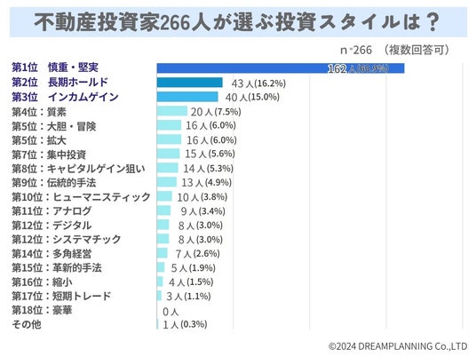 不動産投資家266人の投資スタイルを調査したところ、1位は「慎重・堅実」でした。