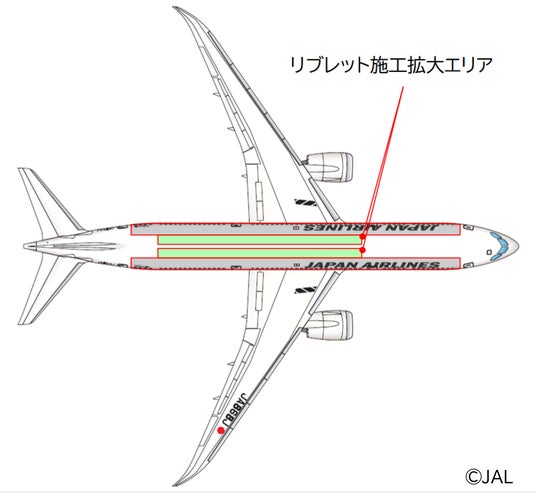 (*3) 2025年1月10日付プレスリリース|大面積リブレット形状塗膜を施した機材を世界で初めて国際線に導入 https://press.jal.co.jp/ja/release/202501/008565.html