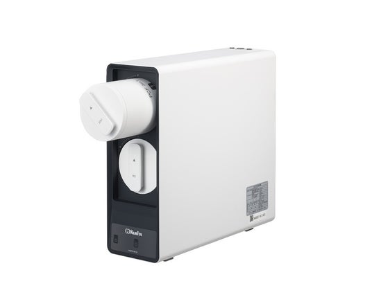 「KURITA RO-02」は、飲食店などの厨房のシンクの脇に置くことのできるコンパクトさと、1時間に最大120リットル(*1)の純水を生成できるパワフルさを兼ね備えた、業務用小型RO純水装置です。また、水道水中に含まれるカルシウムやマグネシウムを9割以上除去することができ、定期的に交換が必要なカートリッジもワンタッチで取り扱うことができます。