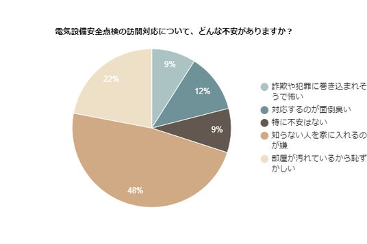 電気設備安全点検の訪問点検について、48%の人が「知らない人を家に入れるのが嫌」と回答しました。