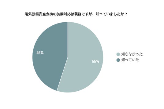 電気設備安全点検の訪問対応は、55%が「義務と知らなかった」と回答しました。