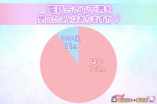 回答者113人中102人が「はい」と答えており、これは電話占いの利用者の間で広範囲にわたる不満が存在していることを示唆しています。