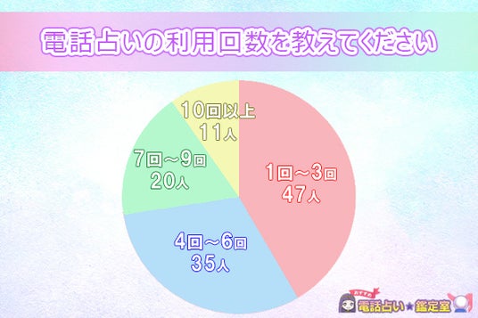 電話占いの利用回数を見ると、最も多いのは「1回~3回」の47人です。