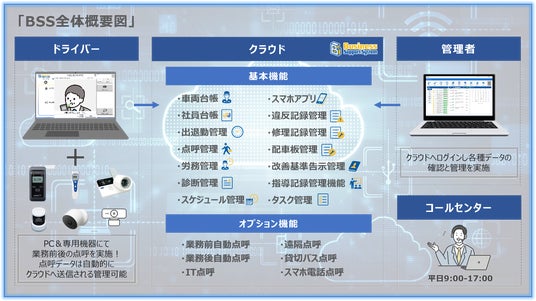 また、点呼機能だけなくBSSクラウドにて一元管理可能な「台帳管理」 「労務/改善基準告示管理」