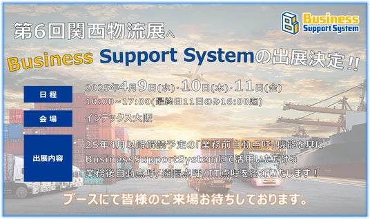 運送事業者様向け点呼システム「Business Support System」をインテックス大阪開催の「関西物流展」へ出展することが決定いたしました。