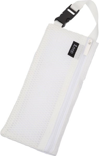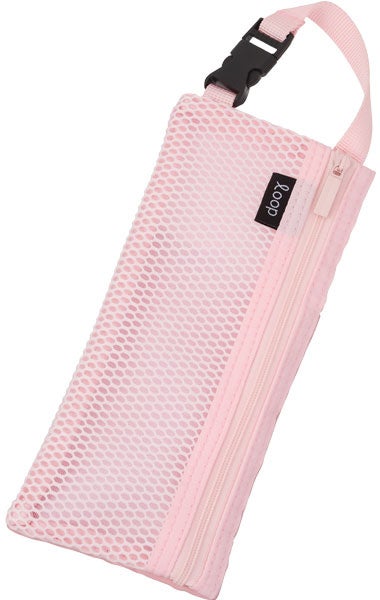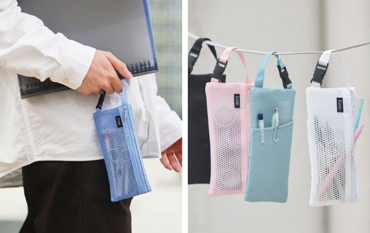 また、背面にはポケットが付いており、ファスナーを開閉せずに、素早く出し入れしたいときなどに便利です。カラーは全5色。シンプルタイプと、中身の見えるメッシュタイプがあります。
