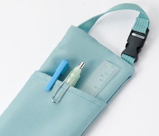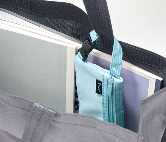 持ち手付きで、フックに掛けたり持ち運びやすいのはもちろん、ワンタッチバックルが付いているので、バッグなどに取り付けて一緒に持ち運ぶのに便利です。バッグの中で無くなりがちなペンをスマートに収納できたり、学校での専科用のバッグに付ければ移動教室での忘れ物防止にもなります。
